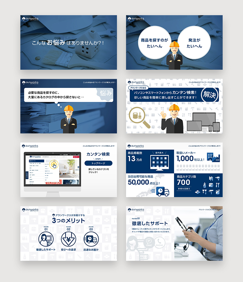 建築資材を取り扱うECサイト『アウンワークス』のサービス概要を紹介するムービ制作を手掛けさせていただきました。