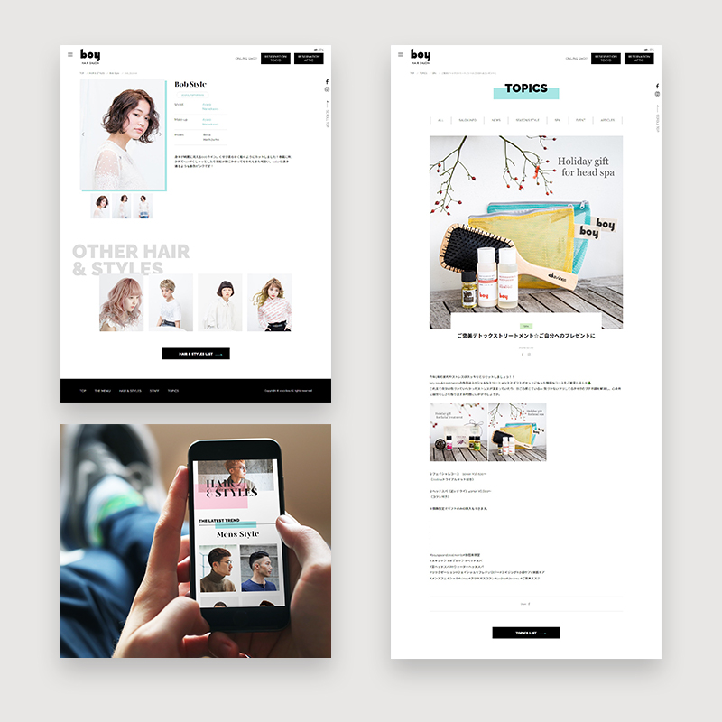 boyの素晴らしさを既存サイトでは表現出来ていなかったので、新webサイトでは、その歴史やスタッフさんの個性、ヘアースタイル提案などをきちんと表現し、ユーザに伝わるサイトを目指しました。